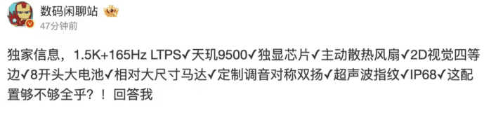 不光有电扇,它还塞进了一块八千多毫安的超等大电板,合营定制双扬声器和超声波指纹。这台手机拿在手里,完全便是一台披着平时手机外套的性能野兽。