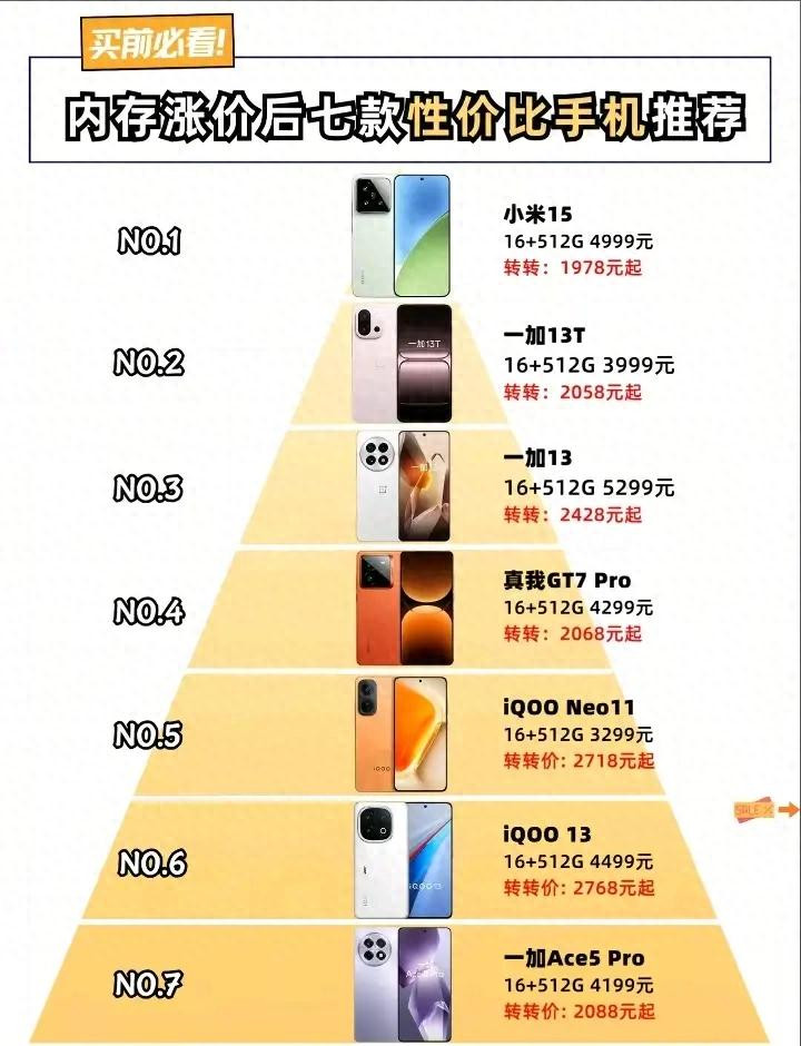 临了位列第七的一加Ace 5 Pro,它以极具冲击力的价钱和明确的居品定位,为本次保举榜单齐全完毕。这款手机16GB加512GB版块的官方售价为四千一百九十九元。算作一加旗下的Ace系列居品,它生来就是为了讲明性价比三个字。Ace 5 Pro在中枢确立上从欠协调,不时会搭载与自家旗舰同款的顶级处理器,确保性能输出达到巅峰水准。同期,它会在游戏体验上进行专项优化,比如更强的散热系统、更机灵的触控反馈以及更安详的集合连结。关于那些预算相对有限,但敌手机性能有着最极致追求,且不太介怀一些外围确立各别的用户来说,一加Ace 5 Pro提供了一个近乎齐全的惩处决策。在内存加价的2026年3月,能以如斯便宜的价钱拿到一款领有16GB加512GB顶配规格的性能猛兽,确乎称得上是闭眼入的采用。