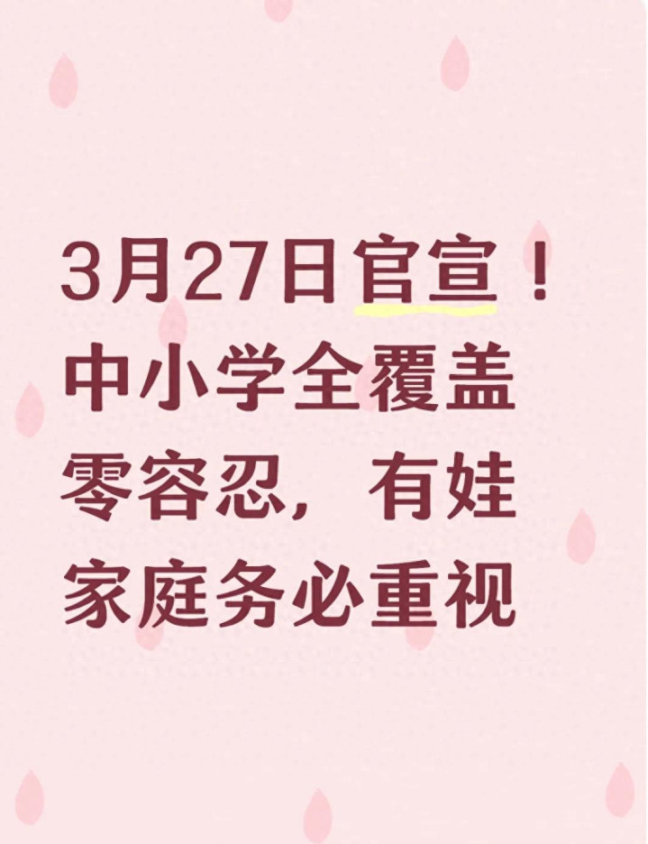 滚球app(中国)官网 3月27日官宣! 中小学全掩盖零容忍, 有娃家庭务必隆重